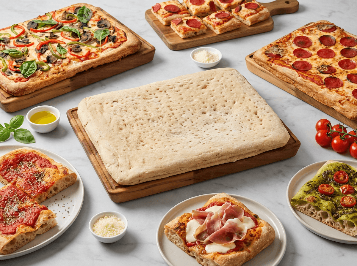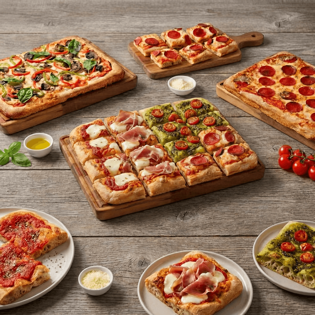 Tu cliente no quiere una pizza, tu cliente tiene un antojo. Córtala al tamaño que necesites, decórala con gran variedad de ingredientes. La masa madre con alveolos irregulares la hace esponjosa y muy versátil.
