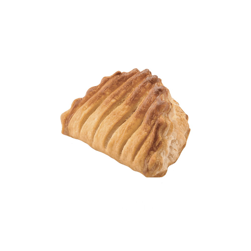 Una empanada de mantequilla francesa rellena de cubitos de manzana caramelizados y delicadamente realzados por los aromas y texturas de la pasta hojaldrada. Llena del sabor y de las texturas que le confieren la técnica y la destreza de la panadería tradicional francesa.